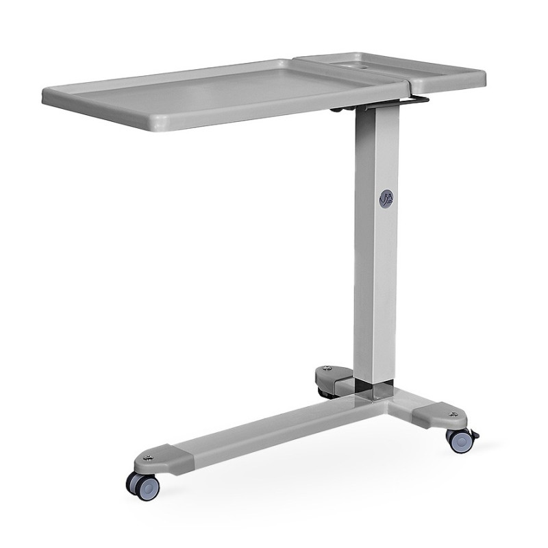 Stolik przeznaczony jest do żywienia pacjenta w łóżku medycznym/szpitalnym. Konstrukcja stelaża podstawy umożliwia bliskie dosunięcie stolika do łóżka, fotela oraz krzesła. Możliwość zmiany wysokość blatu oraz kąta jego nachylenia pozwala dostosować jego pozycję dla wygody pacjenta.