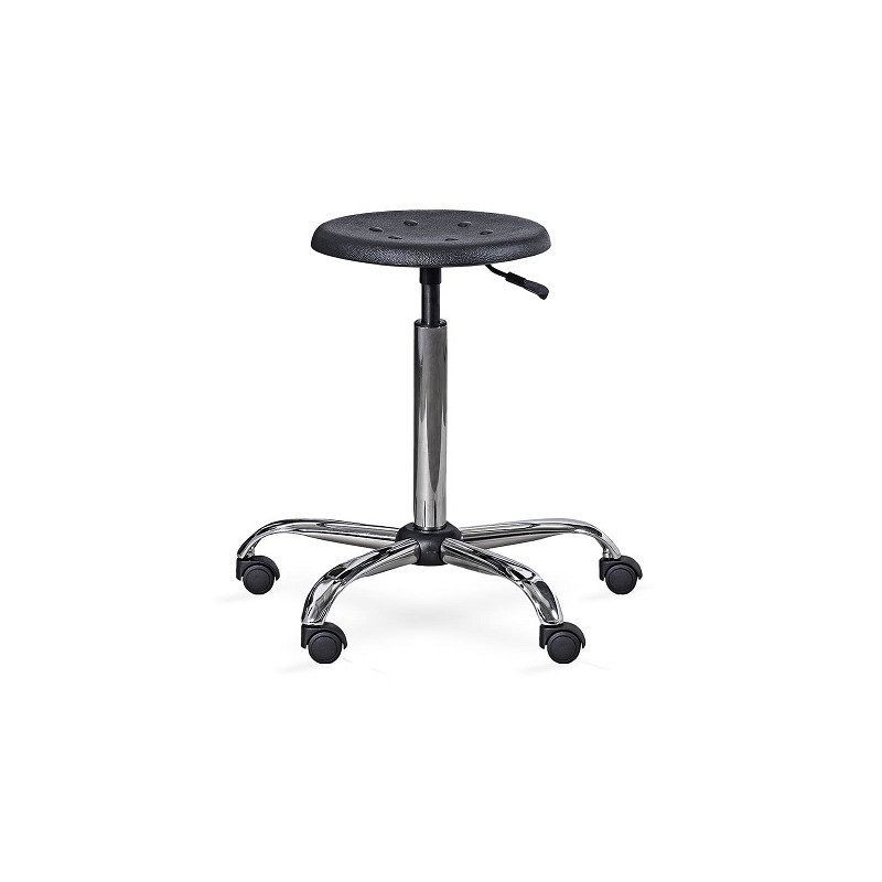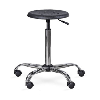 Taboret na podstawie stalowej, chromowanej, na kółkach. Siedzisko okrągłe, tworzywowe, twarde, pozwala na łatwe utrzymanie czystości. Dzięki zastosowanej sprężynie gazowej możliwość dostosowania wysokości taboretu do potrzeb użytkownika.