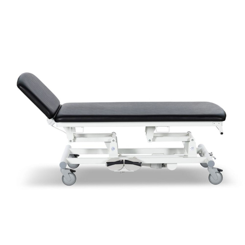 Stół zabiegowy STEL22, wyposażony w dwa niezależne siłowniki elektryczne, oferuje wyjątkową precyzję regulacji, umożliwiając dostosowanie wysokości w zakresie od 54 do 94,5 cm oraz precyzyjne ustawienie kąta pochylenia zagłówka. Dzięki temu zapewnia optymalne warunki dla pacjentów i ułatwia pracę personelowi medycznemu.
