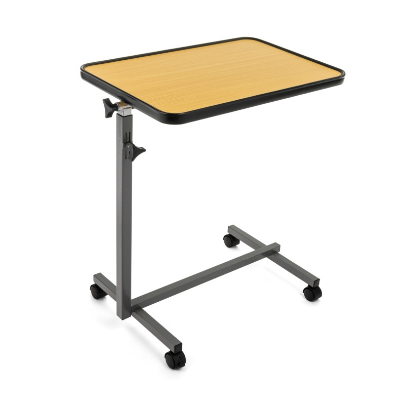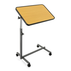 Stolik posiada regulowany blat oraz kółka z hamulcem zapewniające możliwość przesuwania oraz blokowania w ustalonym położeniu. Posiada dodatkowe obramowanie, które zapobiega zssuwaniu się przedmiotów z jego powierzchni.