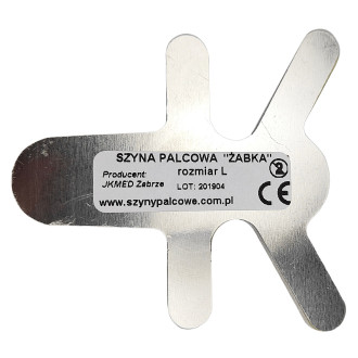 Szyna typu "żabka" zalecana w przypadku złamania, zwichnięcia, wybicia, jak również przy artretycznym palcu.