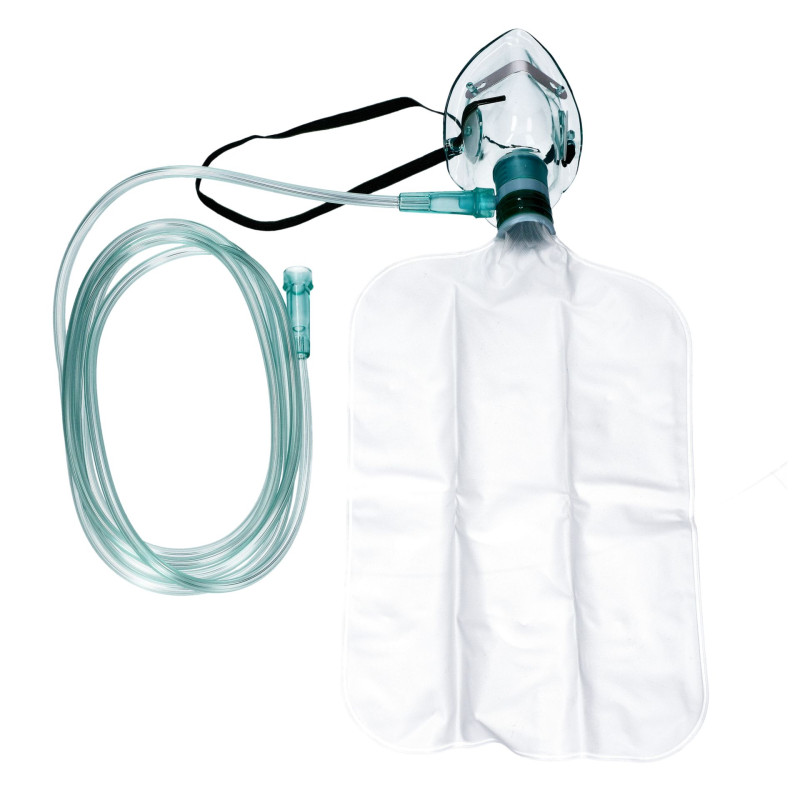 + Rezerwuar tlenu (worek) z zastawką zapobiega dostawaniu się do worka powietrza wydychanego, natomiast zapewnia wdychanie tylko czystego tlenu z worka