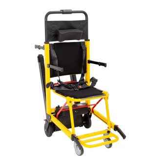 Krzesło ewakuacyjne z napędem elektrycznym umożliwia jednej osobie bezpiecznie transportować i ewakuować osobę na o ograniczonej mobilności zarówno w dół, jak i w górę po schodach. To rozwiązanie jest idealne w sytuacjach zagrożenia lub gdy windy są niedostępne.