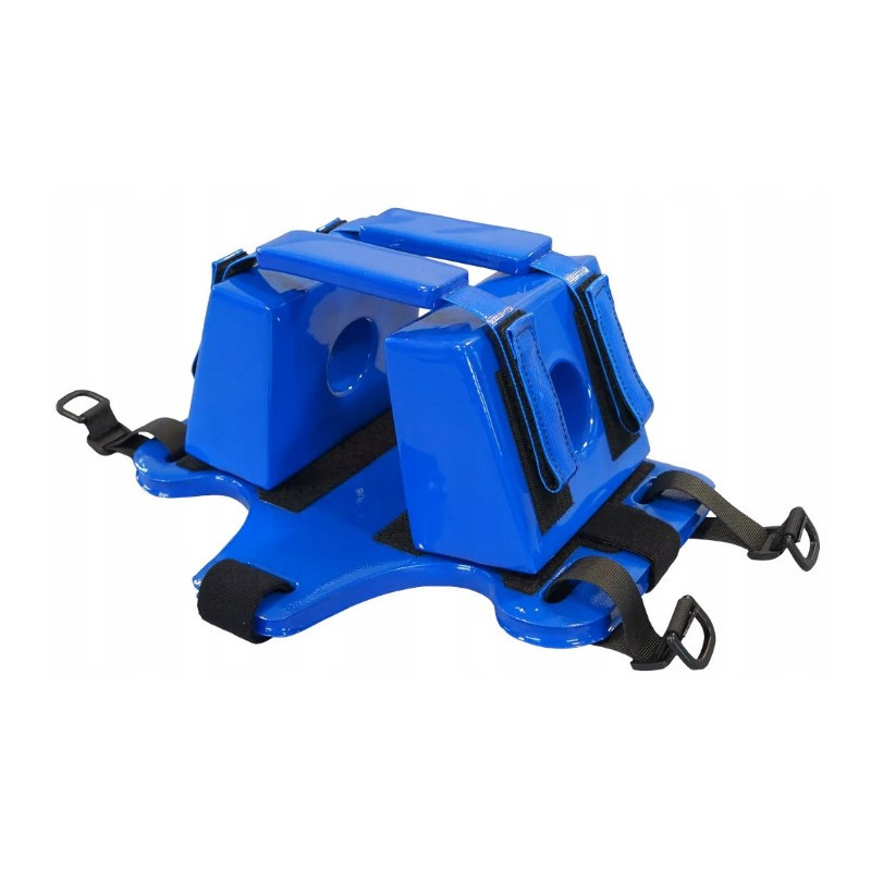 Stabilizator klockowy do deski ortopedycznej służy do stabilizowania głowy osoby poszkodowanej znajdującej się na desce ortopedycznej.