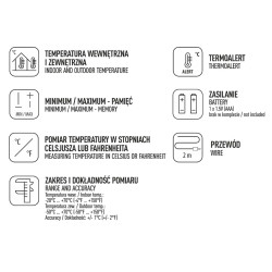 Monitoruj zmiany temperatury na bieżąco! Elektroniczna stacja pogodowa z magnesami umożliwia pomiar zarówno wewnątrz, jak i na zewnątrz pomieszczenia - dzięki dołączonej sondzie!