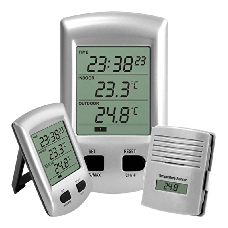 - W zestawie jeden bezprzewodowy czujnik temperatury,