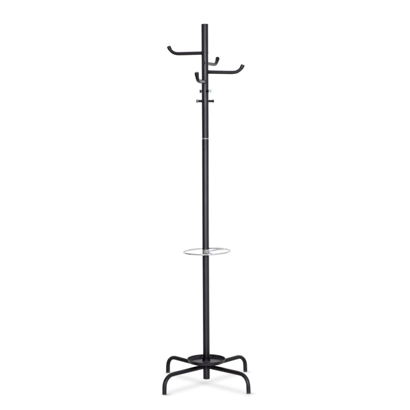 Wieszak Arizona to nowoczesny, lekki wieszak, wykonany z metalu malowanego proszkowo lub o wykończeniu chrom. Wieszak posiada podstawę i pierścień podtrzymujący na parasole. Wieszak jest łatwy w demontażu.