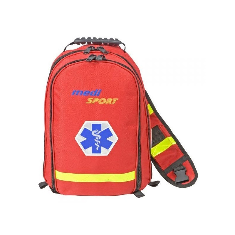 Apteczka dla Sportowców (Przenośny Zestaw Pierwszej Pomocy ZPP typ A® MEDI-SPORT) została umieszczona w plecaku/torbie, wykonanej z powlekanego materiału nowej generacji. Jest to tkanina wodoodporna o niskiej ścieralności. Plecak/torba posiada uchwyty umożliwiające transport zestawu w ręku. Sprzęt znajdujący się w plecaku / torbie jest przejrzyście rozmieszczony, z łatwym dostępem do niezależnych przegród. Użyty materiał oraz rozwiązania konstrukcyjne (odpinane przegrody) charakteryzują się łatwością dezynfekcji i prania.