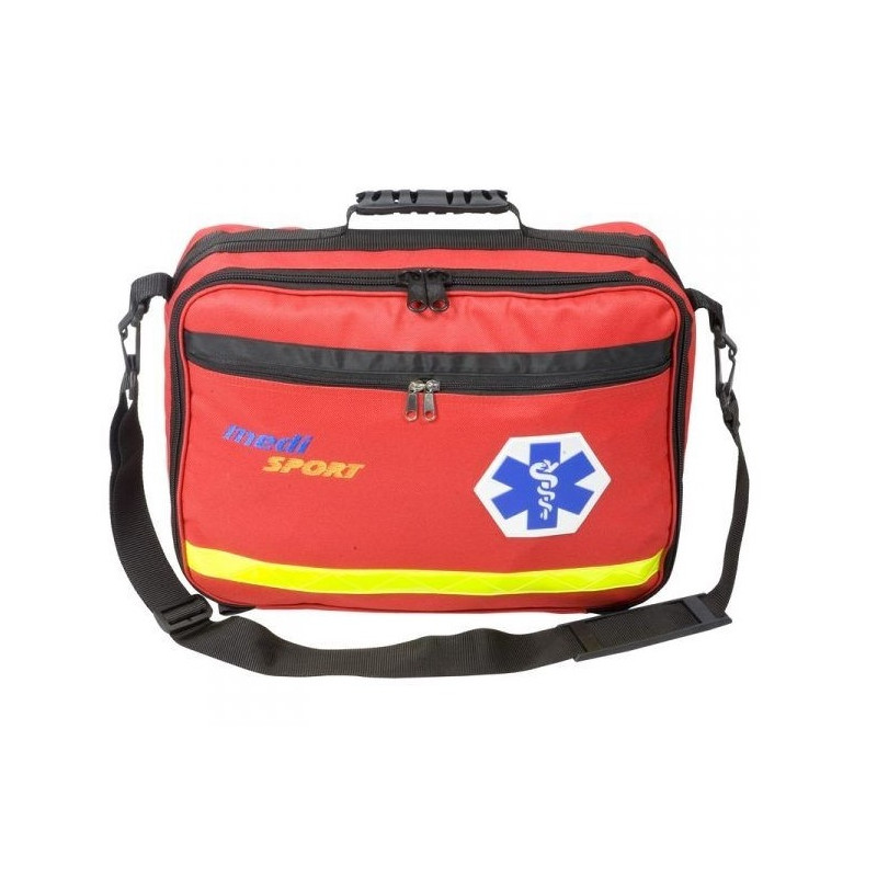 Apteczka dla Sportowców (Przenośny Zestaw Pierwszej Pomocy ZPP typ B® MEDI-SPORT) została umieszczona w torbie wykonanej z powlekanego materiału nowej generacji. Jest to tkanina wodoodporna o niskiej ścieralności. Torba posiada uchwyty umożliwiające transport zestawu w ręku. Sprzęt znajdujący się w torbie jest przejrzyście rozmieszczony, z łatwym dostępem do niezależnych przegród. Użyty materiał oraz rozwiązania konstrukcyjne (odpinane przegrody) charakteryzują się łatwością dezynfekcji i prania.