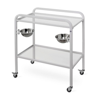 Wersja stolika rozszerzona o dodatkowe pojemniki/miski na drobne odpady medyczne. Pojemniki wykonane ze stali nierdzewnej.