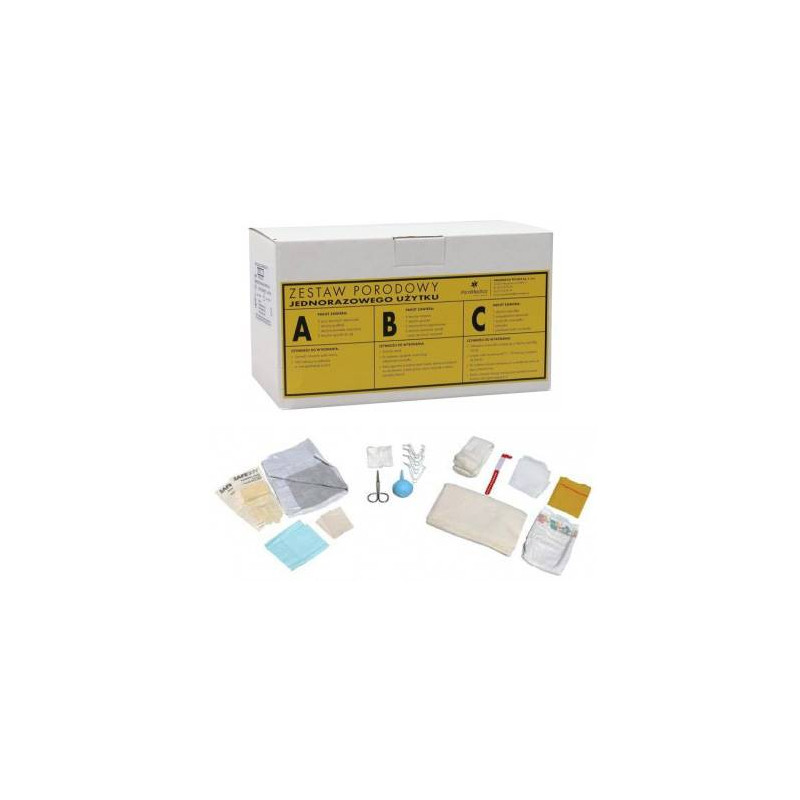 Zestaw porodowy ABC jednorazowego użytku zawiera trzy pakiety niezbędne podczas porodu.