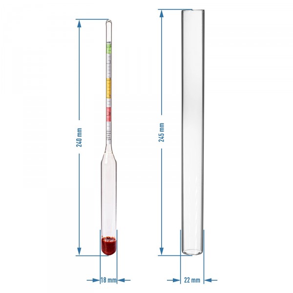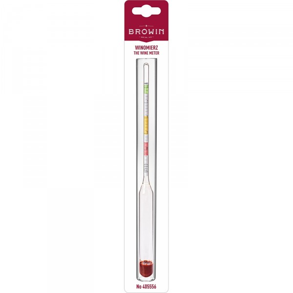 - + Areometr ten pozwala również w sposób pośredni określić stężenie alkoholu w winie, poprzez proste obliczenia.