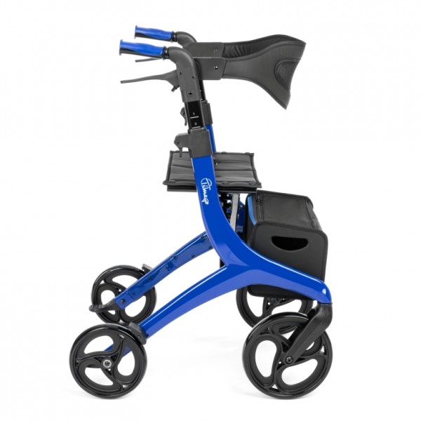 Skuteczne hamulce z blokadą postojową zapewniają pełną kontrolę nad podpórką i bezpieczeństwo podczas każdego zatrzymania. Dodatkowo pojemna torba sprawia, że zakupy i rzeczy osobiste masz zawsze przy sobie.