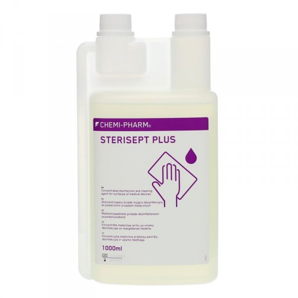 Roztwór preparatu Sterisept Plus przygotować zgodnie z tabelą stężeń przez dodanie odpowiedniej ilości koncentratu do odmierzonej ilości wody wodociągowej. Dekontaminację powierzchni przeprowadzić za pomocą ścierki, mopa lub urządzeń spryskujących. Wyroby, które można zanurzyć, dezynfekować metodą zanurzeniową. Należy zwrócić uwagę aby przedmioty były całkowicie zanurzone i wypełnione roztworem roboczym.
