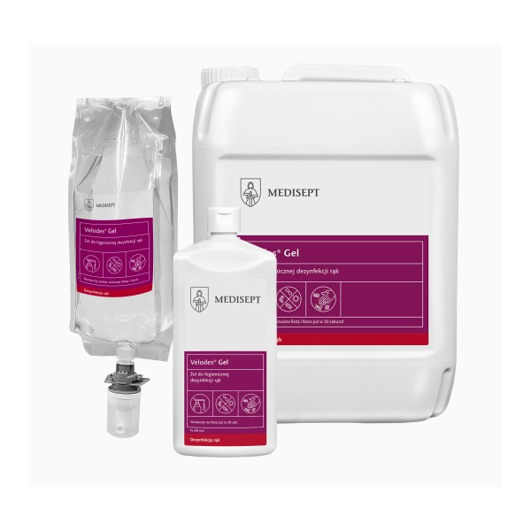 Velodes® Gel to żel przeznaczony do higienicznej i chirurgicznej dezynfekcji rąk. Wykazuje działanie bakteriobójcze, drożdżakobójcze, bójcze wobec prątków gruźlicy i ograniczone wirusobójcze. Działa na wirusy osłonkowe takie jak: Vaccinia, BVDV, HIV, HBV, HCV oraz wirusy Rota i Noro. Łagodny dla dłoni, zawiera substancję pielęgnującą – glicerynę. Dzięki specjalnej formule zapobiega uczuciu lepkości dłoni. Żel przebadany dermatologicznie.