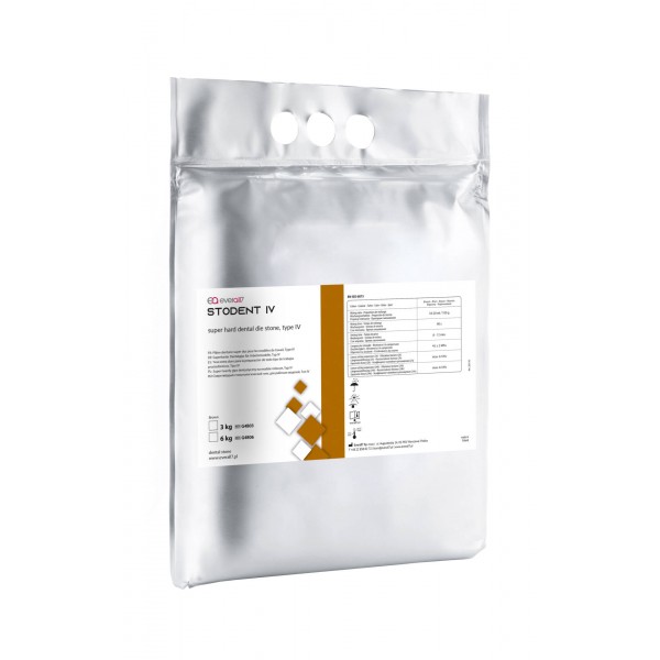 Stodent IV to super twardy gips dentystyczny typ 4 zalecany do wykonywania modeli roboczych stałych protez szkieletowych oraz protez elastycznych, prac kombinowanych, protezowań poimplantacyjnych.