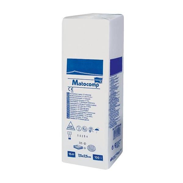 Kompresy Matocomp wykonane są z gazy opatrunkowej, bielonej metodą bezchlorową.