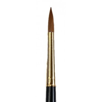 Pędzel okrągły ułożony w szpic 100% włosia Kolinsky, przeznaczony do nakładania i modelowania porcelany. Pędzel wykonany jest z selekcjonowanego naturalnego włosia czerwonej kuny, posiada złotą skuwkę bez szwu oraz lakierowany trzonek z naturalnego drzewa.
