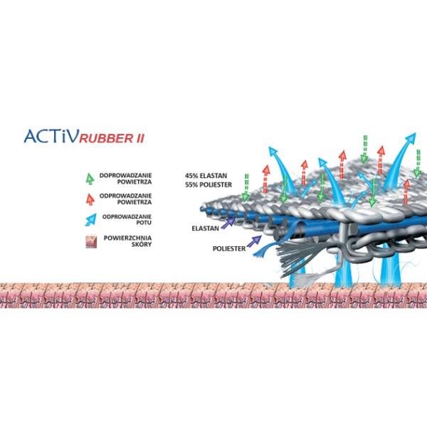 ActivRubber II to aktywna mocna guma ortopedyczna posiadająca dwukierunkową elastyczność, pozwalającą jej na swobodne rozciąganie jej zarówno w kierunku wzdłużnym, jak i poprzecznym. Otworki pomiędzy splotami gumy pozwalają na łatwiejsze oddychanie skóry co poprawia komfort użytkowania wyrobu i ułatwia odprowadzanie potu od ciała pacjenta. Dodatkowo sploty gumy przy większej kompresji wyrobu wykonują jej delikatny mikromasaż. Guma ortopedyczna jest surowcem bardzo przyjaznym dla skóry