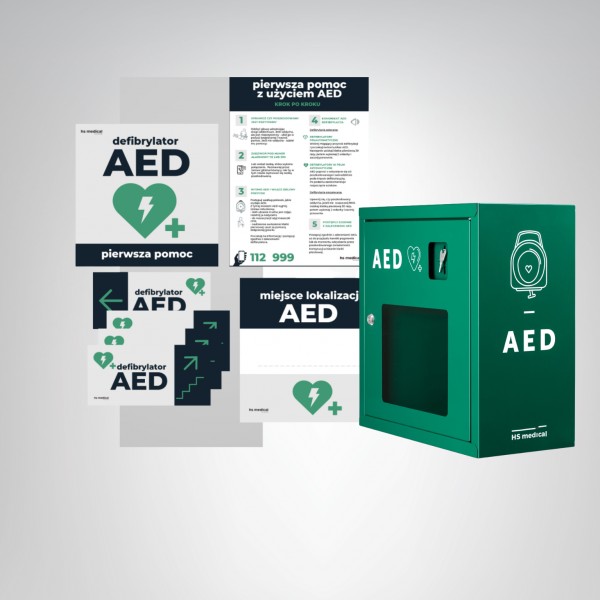 Przeznaczenie: Duży zestaw tablic informacyjnych, przeznaczony do oznakowania lokalizacji defibrylatora AED w budynkach użyteczności publicznej, firmach, szkołach, urzędach, obiektach sportowych i innych miejscach wymagających wyraźnej identyfikacji AED oraz jasnej instrukcji działania w sytuacji awaryjnej.