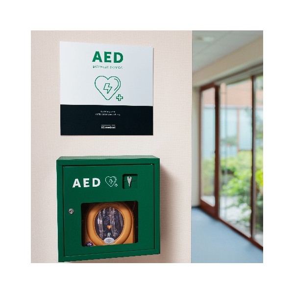 Widoczne oznaczenie AED, ułatwiające szybkie odnalezienie defibrylatora