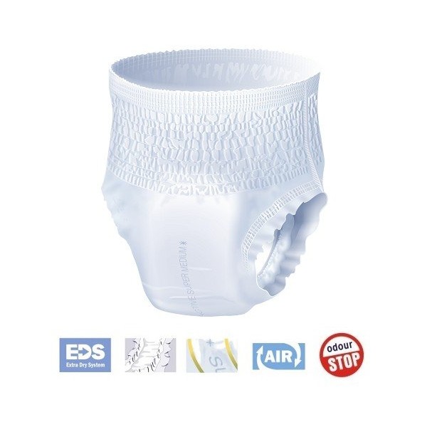 Zapewniają: optymalne dopasowanie do ciała (są elastyczne na całym obwodzie), wygodę podczas ściągania zużytego wyrobu (mają rozrywane szwy boczne), komfort użytkowania (są miękkie i delikatne w dotyku). Redukują nieprzyjemny zapachu moczu, maja wysoką chłonność i zabezpieczenie przed przeciekaniem. Zapewniają swobodne oddychanie skóry oraz minimalizację ryzyka reakcji alergicznych. Na wyrobach znajduje się indykator wilgotności, który stanowi precyzyjną informację o stopniu napełnienia pieluchy i konieczności jej zmiany oraz napis „FRONT” z przodu wyrobu, który wskazuje jak zakładać pieluchę.