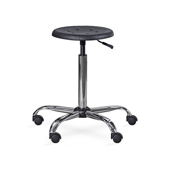 Taboret na podstawie chromowanej na kółkach. Siedzisko i oparcie wykonane z tworzywa poliuretanowego, twarde, pozwala na łatwe utrzymanie czystości. Dzięki zastosowanej sprężynie gazowej możliwość dostosowania wysokości taboretu do potrzeb użytkownika. Taboret został wyposażony w siedzisko z możliwością regulacji wysokości w zależności od potrzeb użytkownika.