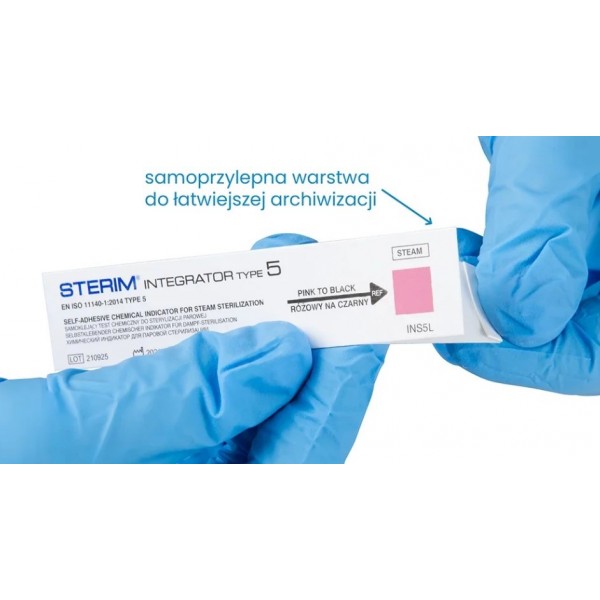 Testy STERIM® Integrator 5 są samoprzylepne, co ułatwia umieszczenie paska w dokumentacji procesów sterylizacji.